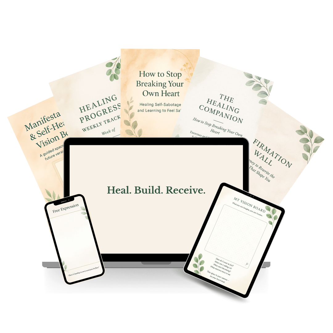 Ebook + Workbook + Weekly Healing Tracker + Vision Board + Affirmation Wall — everything you need to stop repeating the same story.